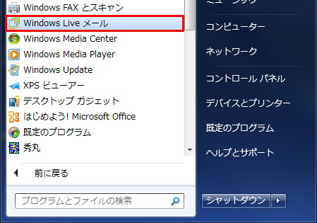@-3 [Windows Live]⇒[Windows Live メール]をクリックします。
