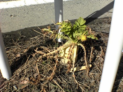 大根がアスファルトを突き破っているわけでもありませんし、大根の背後がすぐ畑であることから大根の種が遠い旅をしてきた様子もうかがえません。