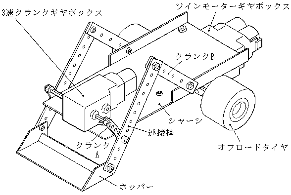 t1アルミ板、連接棒、3速クランクギヤボックス、ツインモーターギヤボックス、キャスター、オフロードタイヤ、コントロールボックス、M3ビス・ナット