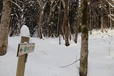 | ほぼ笹は埋まっていて、踏み跡は無い。 | 有るのは野ウサギの足跡だけ |