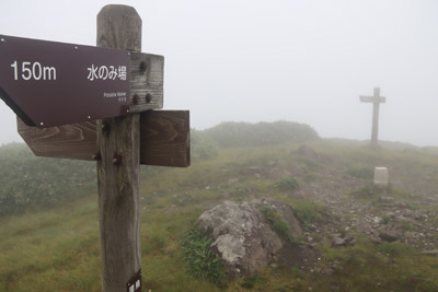 | 三等三角点(1240.3m) | 避難小屋(内部気温20.5度)にて昼食 |