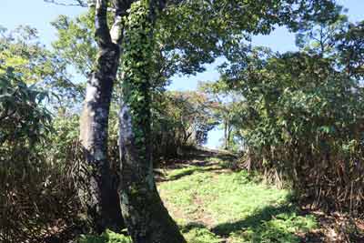 | ブナなどの登山道(しんどい急坂です) | 登山道が緩やかになると山頂は近い。 |