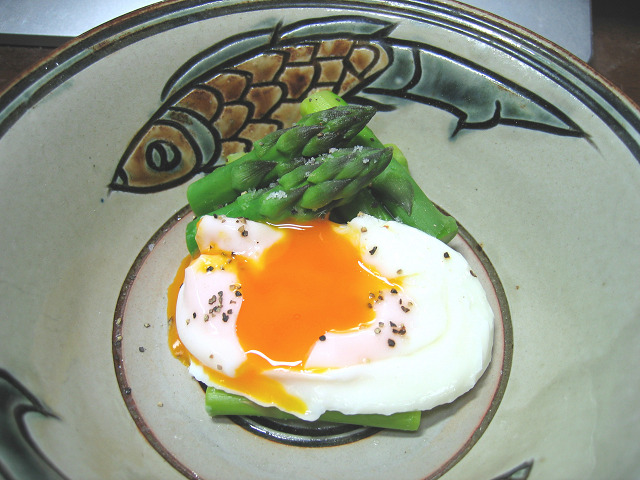 それから、寺坂悠子さん→私の手料理「アスパラガスとポーチドエッグのサラダ」を画像でご馳走いたしま〜す(笑) 現品は、また今度ね。